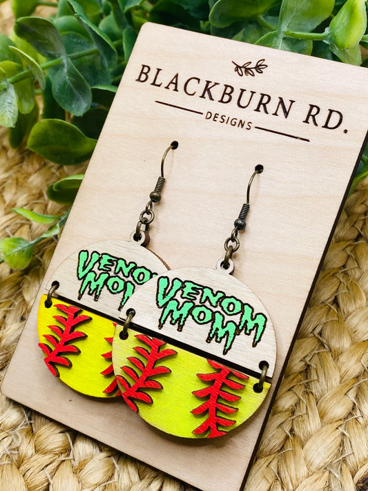 Venom Mom Softball Split Round Dangles