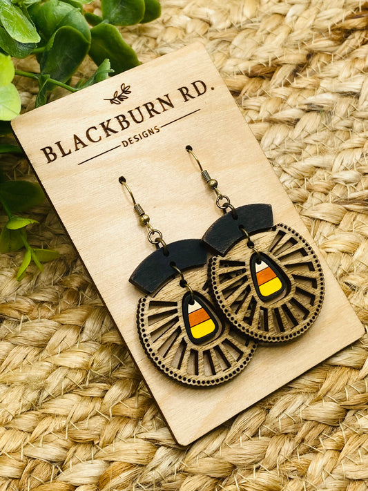 Boho Intricate Candy Corn Sundial Dangles