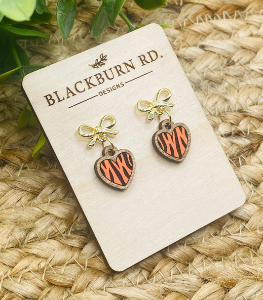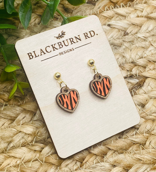 Bengals Tiger Stripe Heart Huggie Dangles