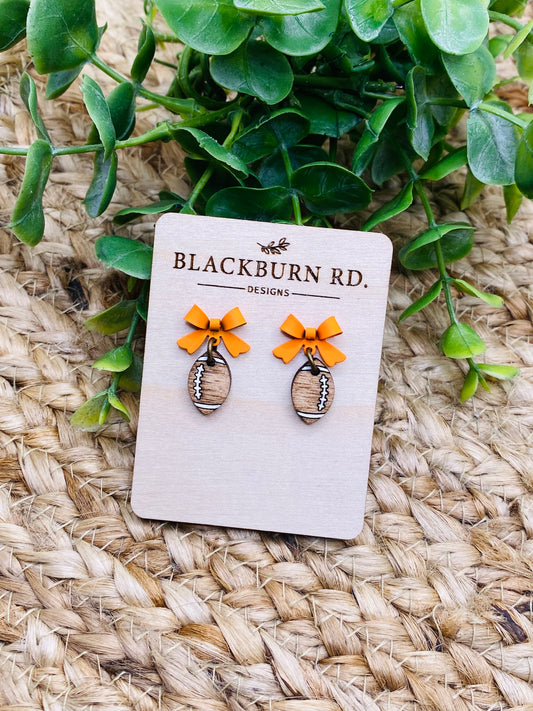 Petite Matte Orange Bow Football Dangles