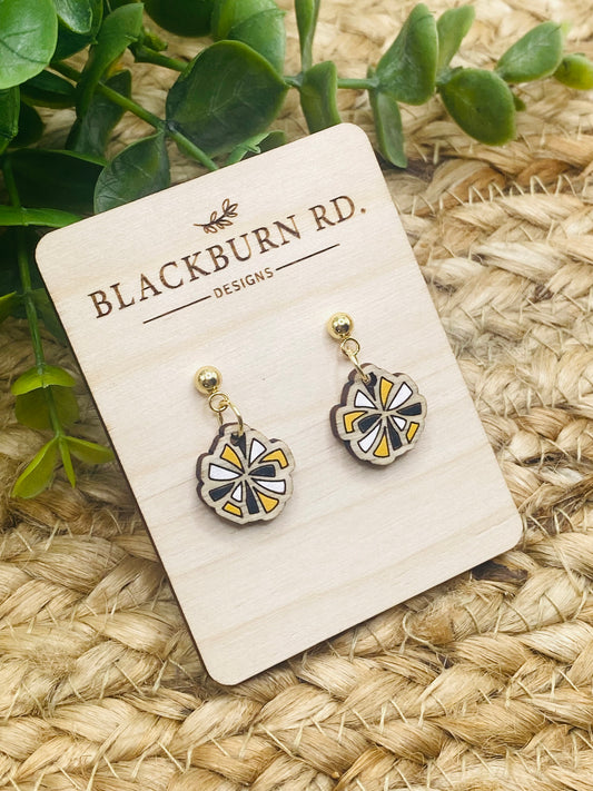 Taylor Petite Gold Bow Cheer Pom Pom Dangles