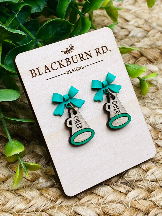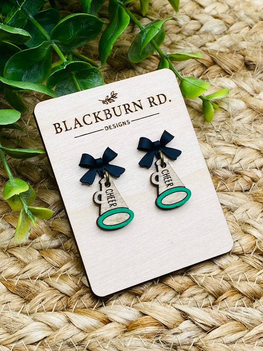 Petite Black Matte Bow Harrison Cheer Megaphone Dangles