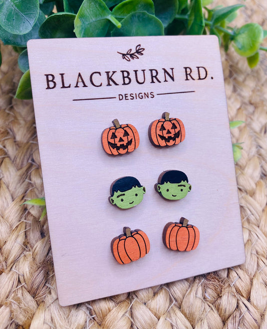 Pumpkins and Frankie Stud Earrings 3 Pack