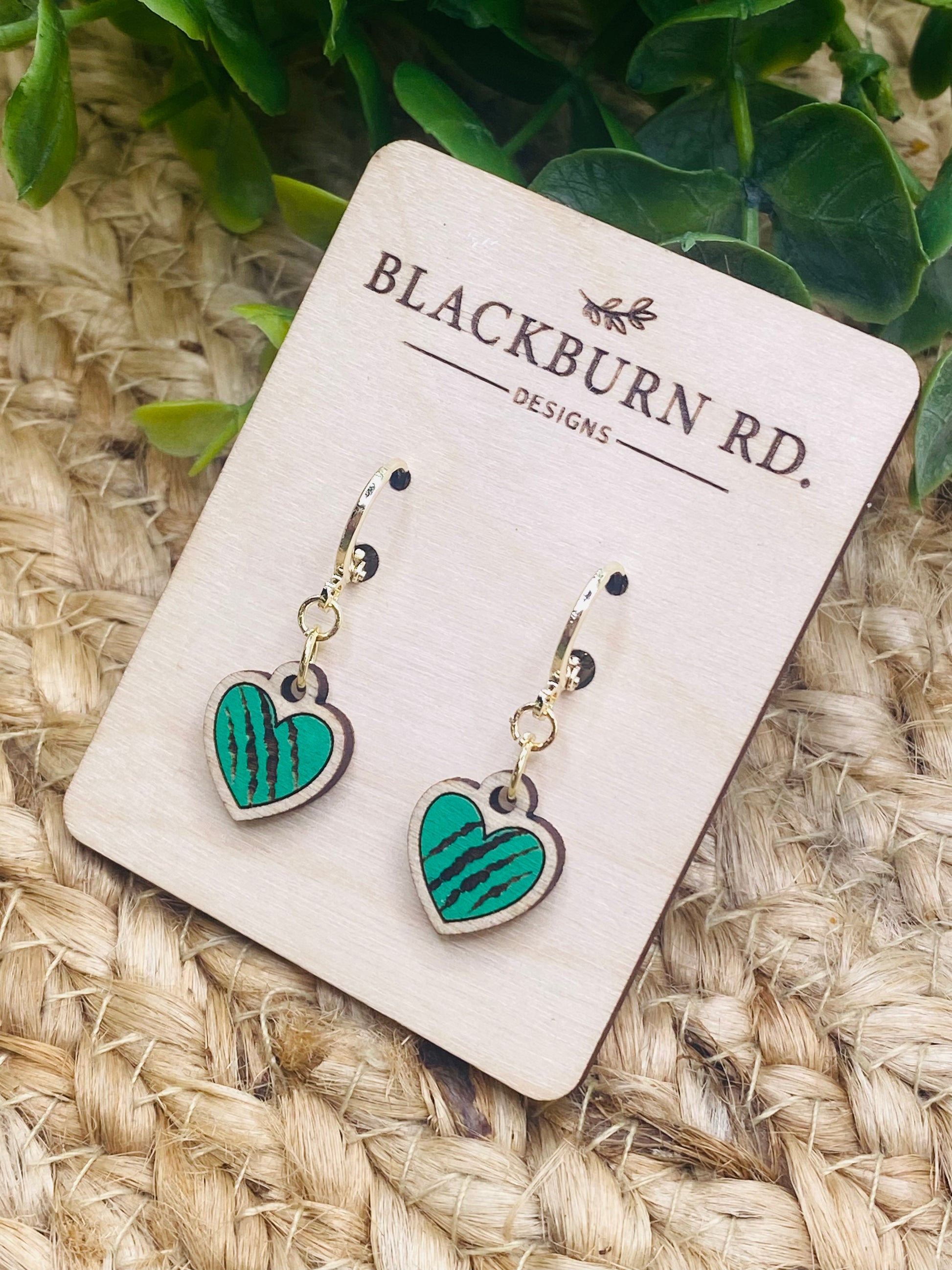 Attached to 14k gold filled huggie earring hoops. Earrings are approximately .60” in length. Perfect for young girls and adults that prefer petite dangles.