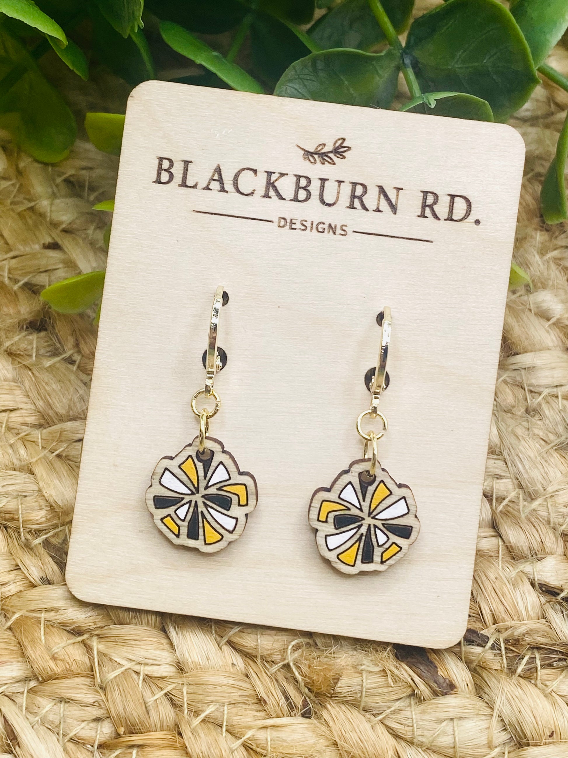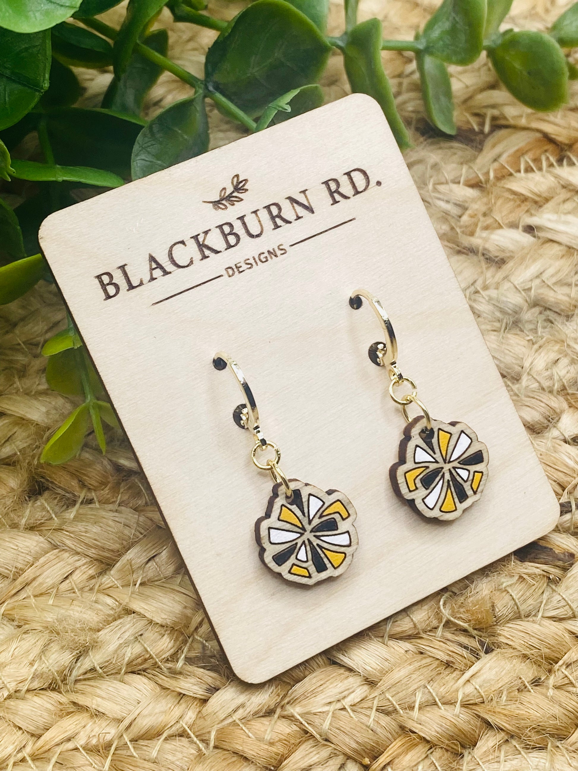 Attached to 14k gold filled huggie earring hoops. Earrings are approximately .60” in length. Perfect for young girls and adults that prefer petite dangles.