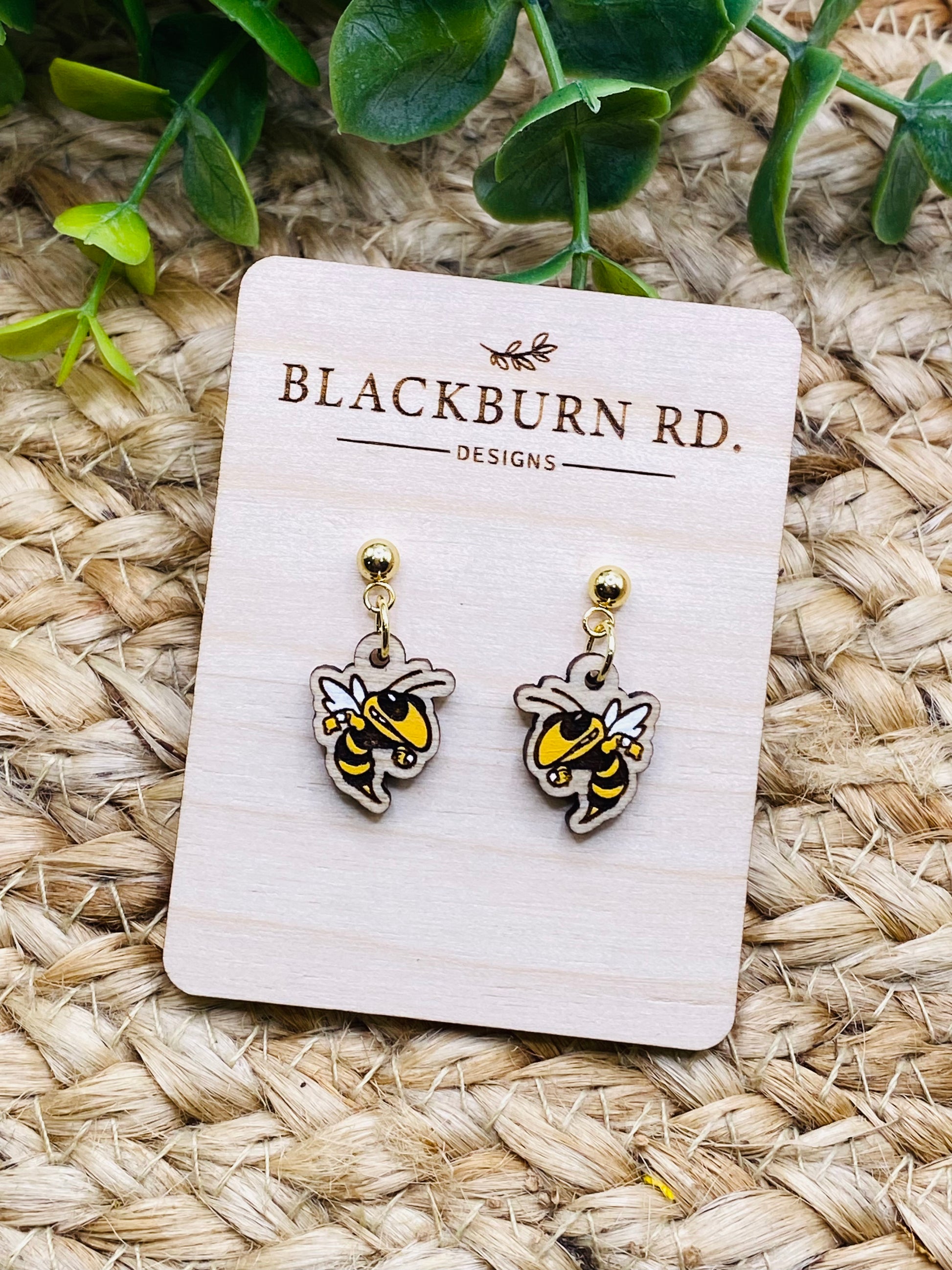 Attached to 24k gold plated earring stud post with gold ball. Earrings are approximately .75” in length.
